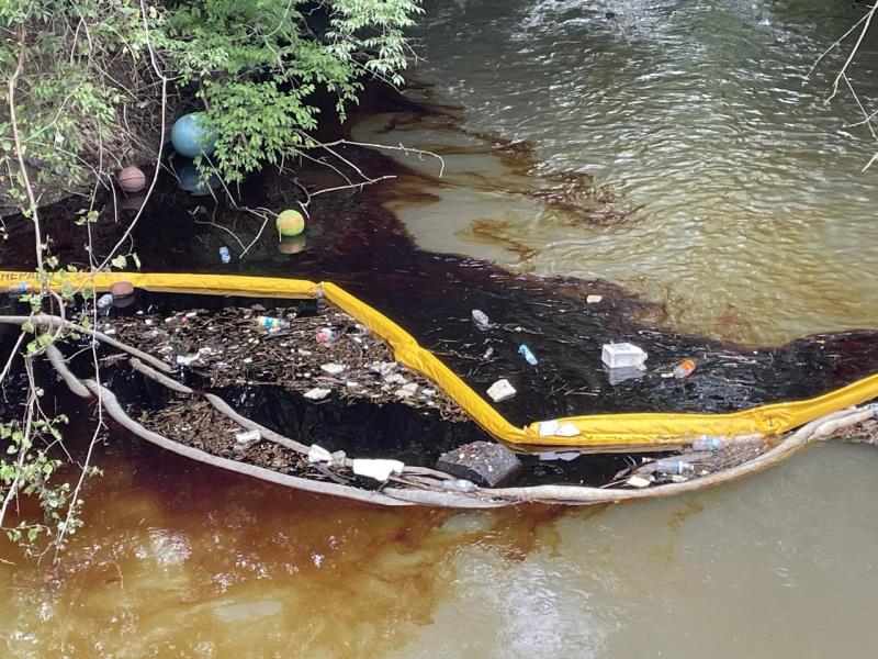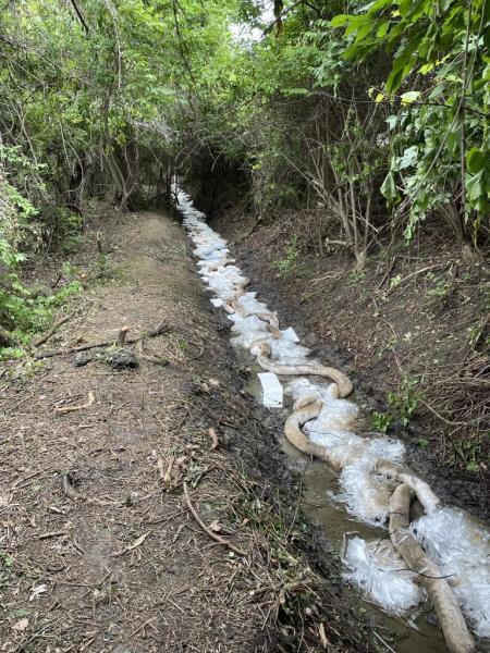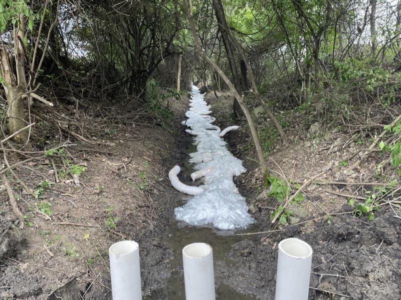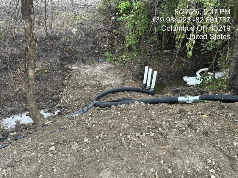 IMG_1952 2.JPG<br />Date Taken: 5/21/2025<br />Category: Site Photo<br />Latitude: 39.9224027777778<br />Longitude: -82.8947361111111<br />Tags: Initial attempt at hard boom containment 3 miles downgradient from point source release (GFL Env) within Mason Run (County Storm Drain) that experiences increased flow after rain event. Site Photo 5/21/2025